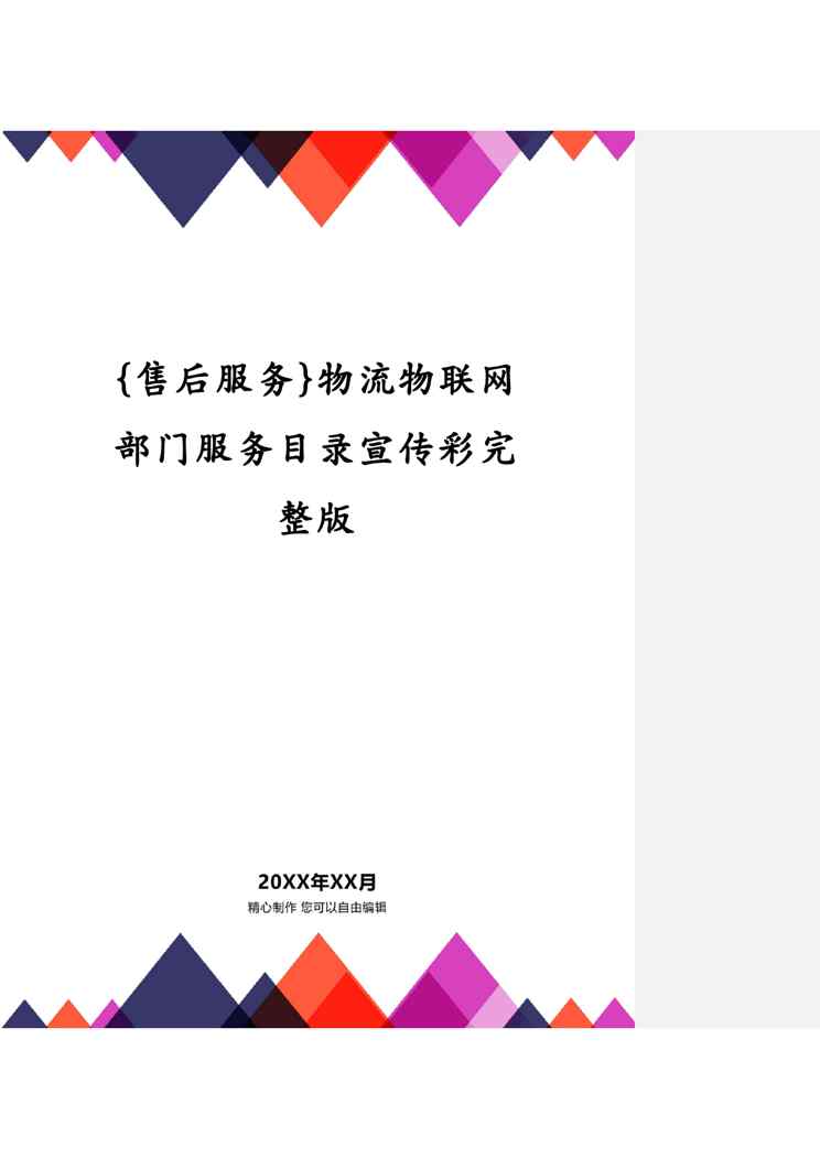 本站正式发布了《{售后服务}物流物联网部门服务目录宣传彩完整版》文档,文档详细内容可下载阅读。 声明:本站所有文章,如无特殊说明或标注,均为本站原创发布。任何个人或组织,在未征得本站同意时,禁止复制、盗用、采集、发布本站内容到任何网站、书籍等各类媒体平台。如若本站内容侵犯了原著者的合法权益,可联系我们进行处理。