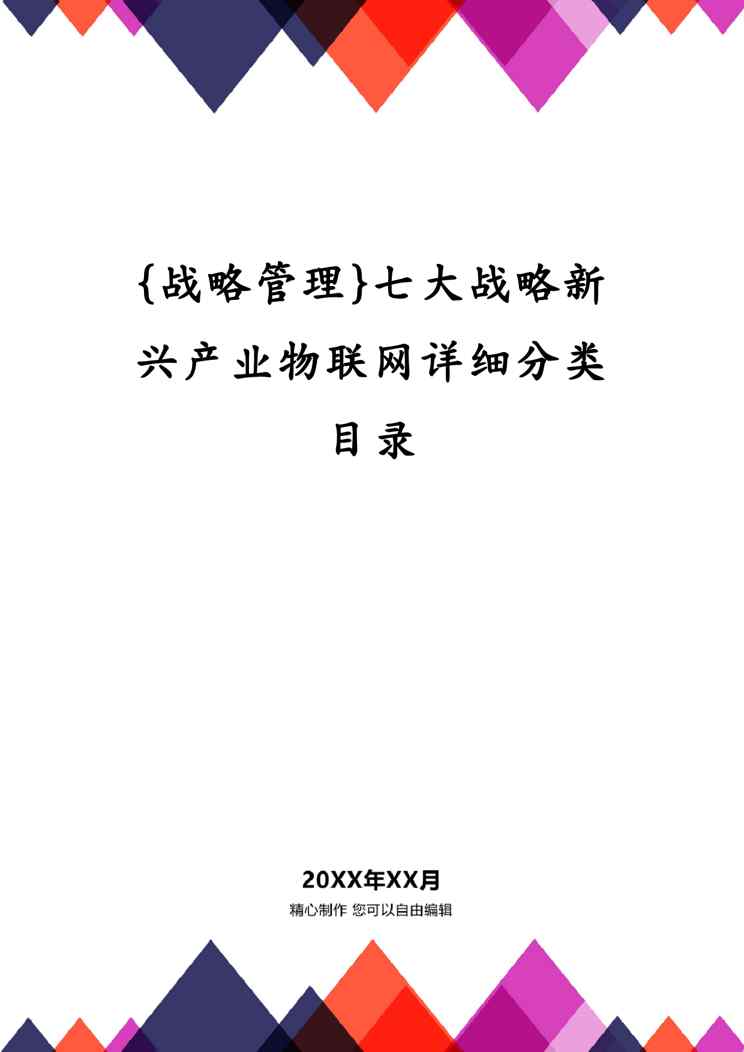 本站正式发布了《{战略管理}七大战略新兴产业物联网详细分类目录》文档,文档详细内容可下载阅读。 声明:本站所有文章,如无特殊说明或标注,均为本站原创发布。任何个人或组织,在未征得本站同意时,禁止复制、盗用、采集、发布本站内容到任何网站、书籍等各类媒体平台。如若本站内容侵犯了原著者的合法权益,可联系我们进行处理。