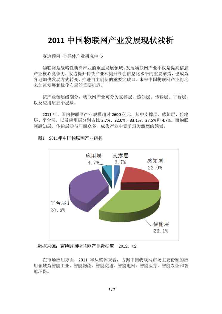 本站资深用户发布了最新的《《2011中国物联网产业发展现状浅析》(2012年2月)》文档,以下内容为预览,详细内容可下载阅读。 声明:本站所有文章,如无特殊说明或标注,均为本站原创发布。任何个人或组织,在未征得本站同意时,禁止复制、盗用、采集、发布本站内容到任何网站、书籍等各类媒体平台。如若本站内容侵犯了原著者的合法权益,可联系我们进行处理。