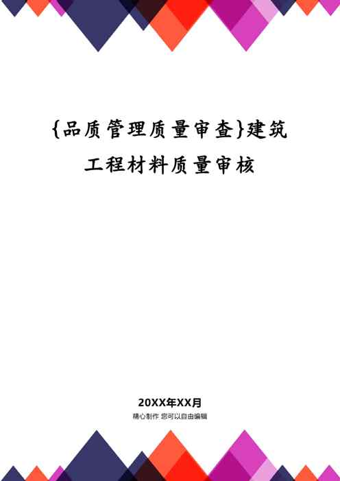 本站资深用户发布了最新的《{品质管理质量审查}建筑工程材料质量审核》文档,以下内容为预览,详细内容可下载阅读。 声明:本站所有文章,如无特殊说明或标注,均为本站原创发布。任何个人或组织,在未征得本站同意时,禁止复制、盗用、采集、发布本站内容到任何网站、书籍等各类媒体平台。如若本站内容侵犯了原著者的合法权益,可联系我们进行处理。
