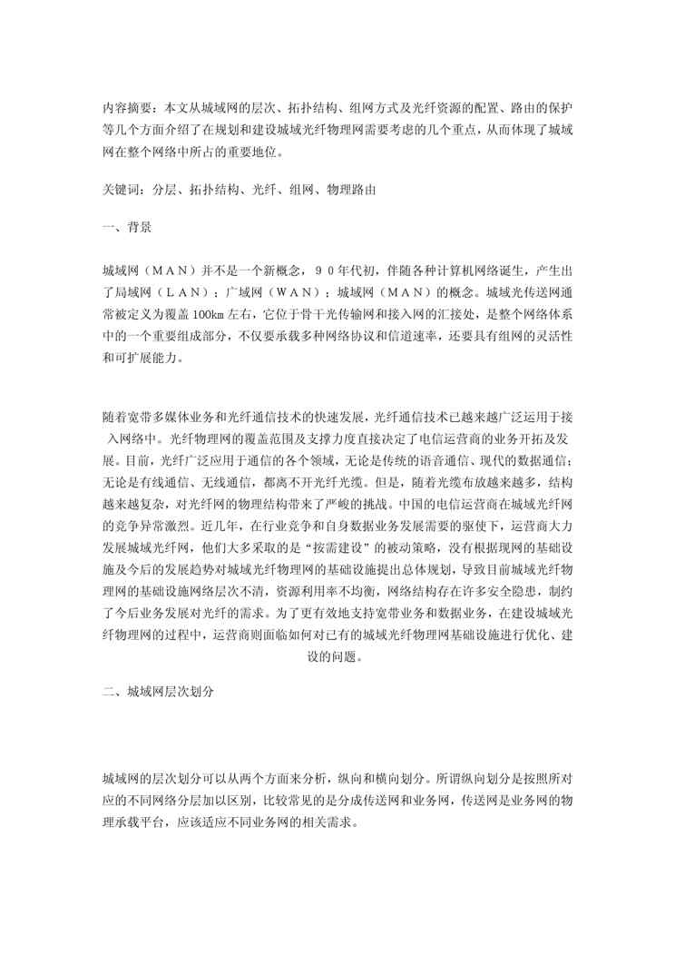 本站资深用户发布了最新的《城域光纤物理网的建设思路》文档,以下内容为预览,详细内容可下载阅读。