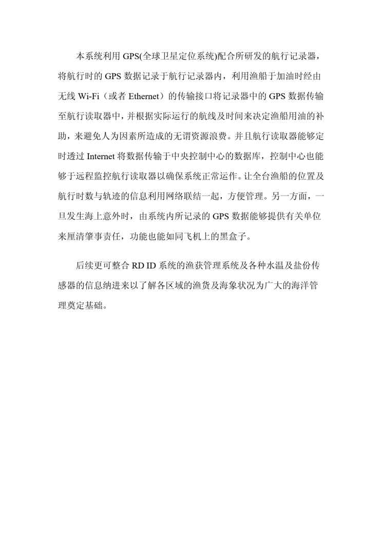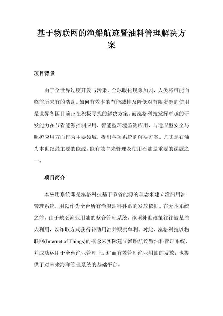 本站资深用户发布了最新的《基于物联网的渔船航迹暨油料管理解决方案》文档,以下内容为预览,详细内容可下载阅读。 声明:本站所有文章,如无特殊说明或标注,均为本站原创发布。任何个人或组织,在未征得本站同意时,禁止复制、盗用、采集、发布本站内容到任何网站、书籍等各类媒体平台。如若本站内容侵犯了原著者的合法权益,可联系我们进行处理。