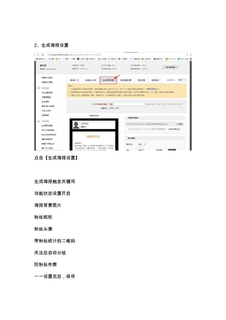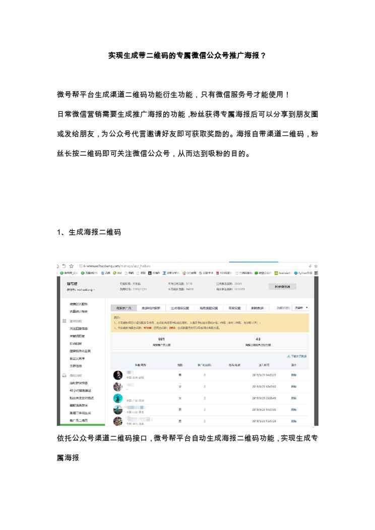 本站资深用户发布了最新的《实现生成带二维码的专属微信公众号推广海报?》文档,以下内容为预览,详细内容可下载阅读。 声明:本站所有文章,如无特殊说明或标注,均为本站原创发布。任何个人或组织,在未征得本站同意时,禁止复制、盗用、采集、发布本站内容到任何网站、书籍等各类媒体平台。如若本站内容侵犯了原著者的合法权益,可联系我们进行处理。