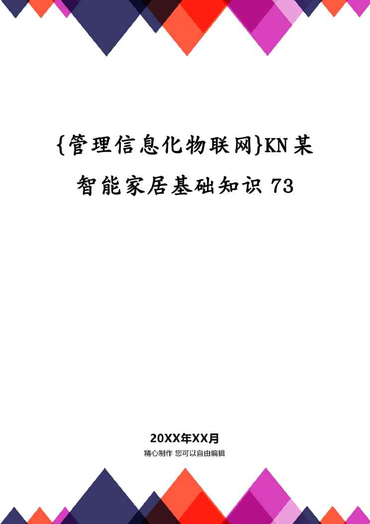 本站正式发布了《{管理信息化物联网}KN某智能家居基础知识73》文档,文档详细内容可下载阅读。 声明:本站所有文章,如无特殊说明或标注,均为本站原创发布。任何个人或组织,在未征得本站同意时,禁止复制、盗用、采集、发布本站内容到任何网站、书籍等各类媒体平台。如若本站内容侵犯了原著者的合法权益,可联系我们进行处理。