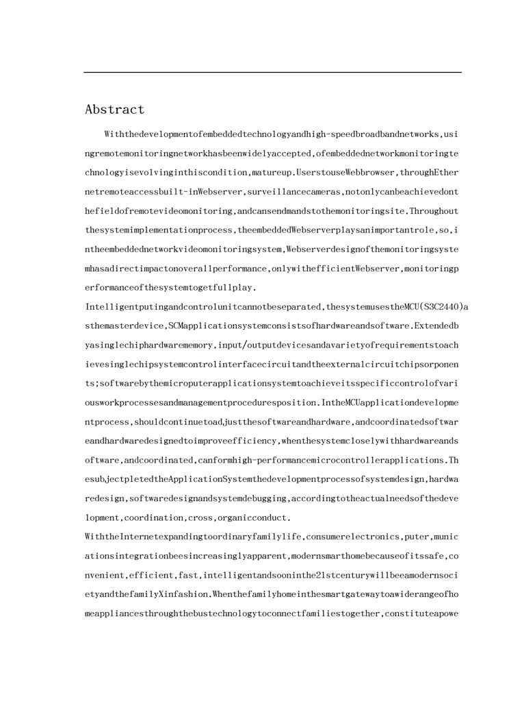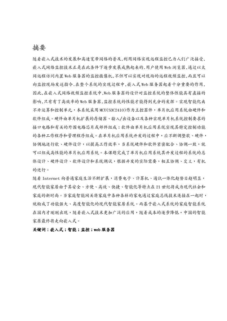 本站资深用户发布了最新的《{管理信息化物联网}智能家居毕业论文48》文档,以下内容为预览,详细内容可下载阅读。 声明:本站所有文章,如无特殊说明或标注,均为本站原创发布。任何个人或组织,在未征得本站同意时,禁止复制、盗用、采集、发布本站内容到任何网站、书籍等各类媒体平台。如若本站内容侵犯了原著者的合法权益,可联系我们进行处理。