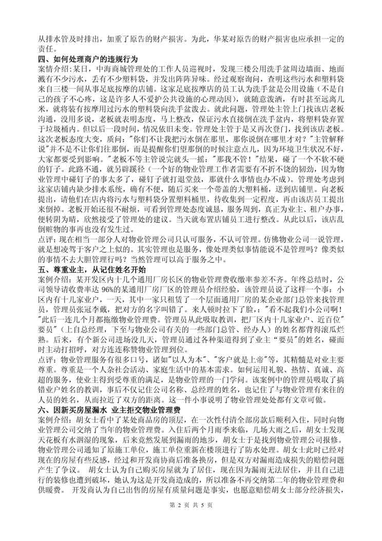 本站资深用户发布了最新的《《物业管理案例分析》培训讲义》文档,以下内容为预览,详细内容可下载阅读。 声明:本站所有文章,如无特殊说明或标注,均为本站原创发布。任何个人或组织,在未征得本站同意时,禁止复制、盗用、采集、发布本站内容到任何网站、书籍等各类媒体平台。如若本站内容侵犯了原著者的合法权益,可联系我们进行处理。