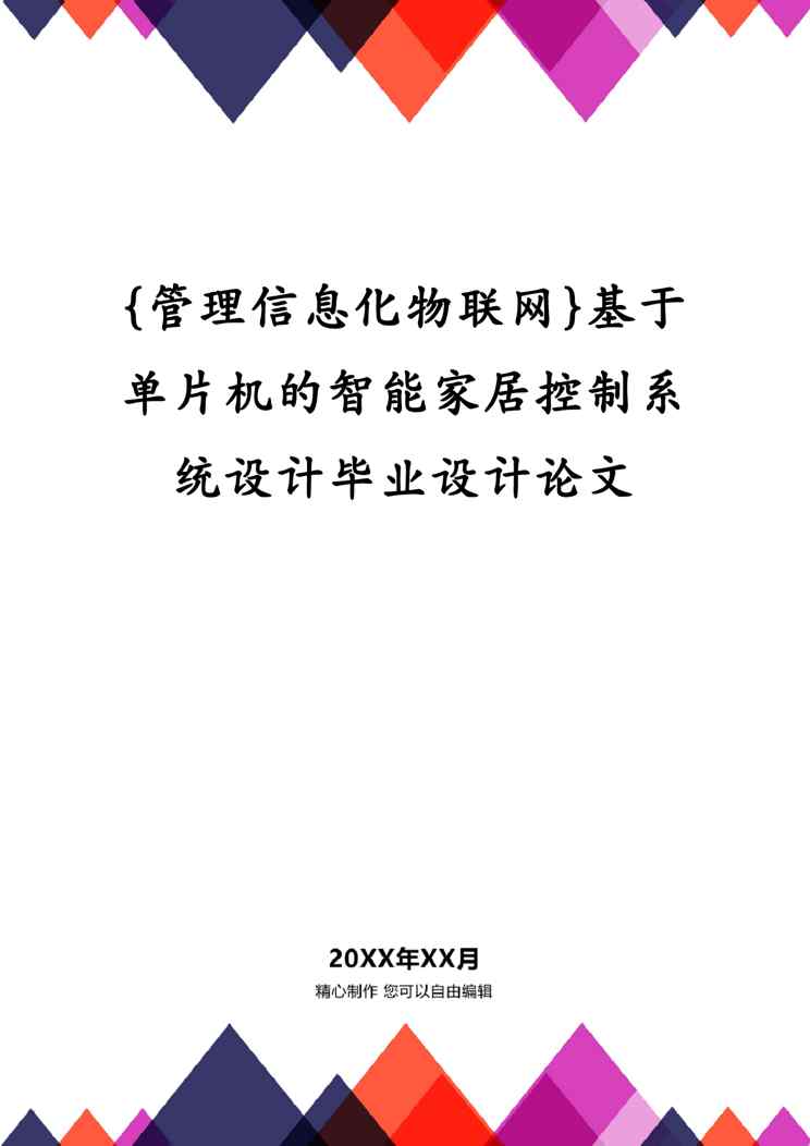 本站资深用户发布了最新的《{管理信息化物联网}基于单片机的智能家居控制系统设计毕业设计论文》文档,以下内容为预览,详细内容可下载阅读。 声明:本站所有文章,如无特殊说明或标注,均为本站原创发布。任何个人或组织,在未征得本站同意时,禁止复制、盗用、采集、发布本站内容到任何网站、书籍等各类媒体平台。如若本站内容侵犯了原著者的合法权益,可联系我们进行处理。