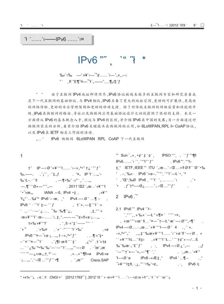 不久前,最新文档《IPv6和物联网》全文正式在本站发布,感兴趣的用户可以下载阅读。 声明:本站所有文章,如无特殊说明或标注,均为本站原创发布。任何个人或组织,在未征得本站同意时,禁止复制、盗用、采集、发布本站内容到任何网站、书籍等各类媒体平台。如若本站内容侵犯了原著者的合法权益,可联系我们进行处理。