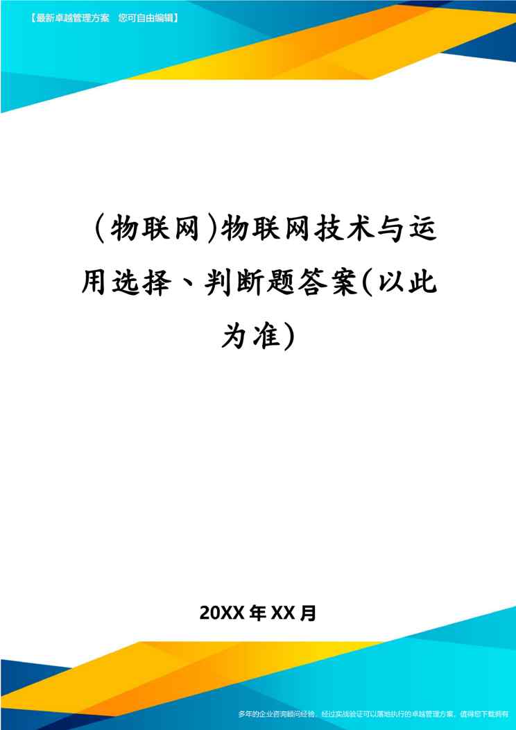 本站正式发布了《(物联网)物联网技术与运用选择、判断题答案(以此为准)》文档,文档详细内容可下载阅读。 声明:本站所有文章,如无特殊说明或标注,均为本站原创发布。任何个人或组织,在未征得本站同意时,禁止复制、盗用、采集、发布本站内容到任何网站、书籍等各类媒体平台。如若本站内容侵犯了原著者的合法权益,可联系我们进行处理。