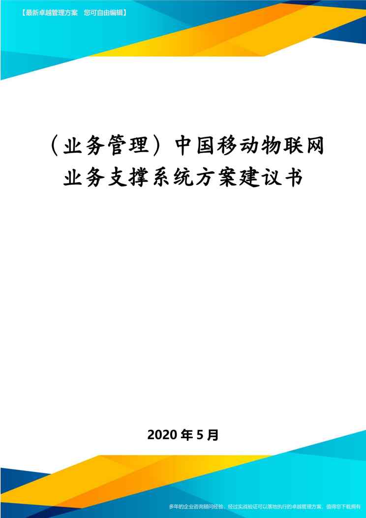 本站正式发布了《(业务管理)中国移动物联网业务支撑系统方案建议书》文档,文档详细内容可下载阅读。 声明:本站所有文章,如无特殊说明或标注,均为本站原创发布。任何个人或组织,在未征得本站同意时,禁止复制、盗用、采集、发布本站内容到任何网站、书籍等各类媒体平台。如若本站内容侵犯了原著者的合法权益,可联系我们进行处理。