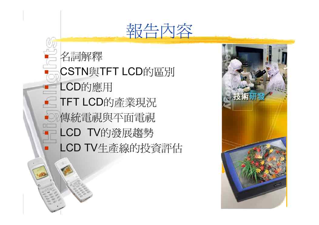 本站资深用户发布了最新的《LCD产业的发展趋势&投资评估》文档,以下内容为预览,详细内容可下载阅读。 声明:本站所有文章,如无特殊说明或标注,均为本站原创发布。任何个人或组织,在未征得本站同意时,禁止复制、盗用、采集、发布本站内容到任何网站、书籍等各类媒体平台。如若本站内容侵犯了原著者的合法权益,可联系我们进行处理。