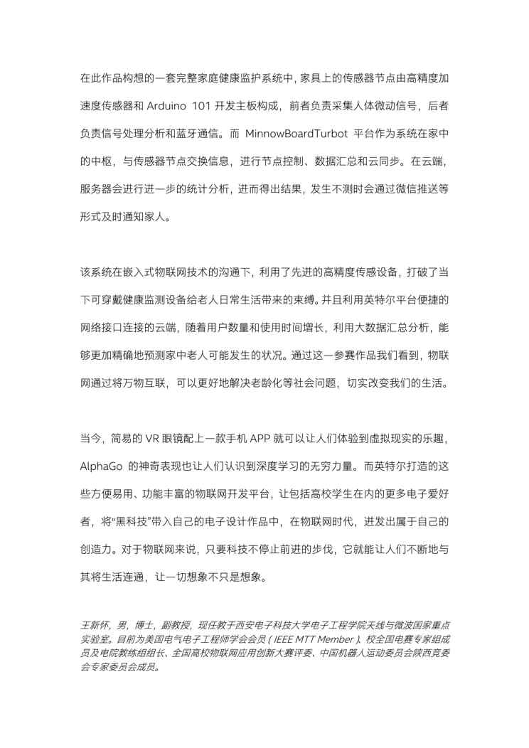 本站资深用户发布了最新的《intel:物联网,让“黑科技”走进现实》文档,以下内容为预览,详细内容可下载阅读。 声明:本站所有文章,如无特殊说明或标注,均为本站原创发布。任何个人或组织,在未征得本站同意时,禁止复制、盗用、采集、发布本站内容到任何网站、书籍等各类媒体平台。如若本站内容侵犯了原著者的合法权益,可联系我们进行处理。