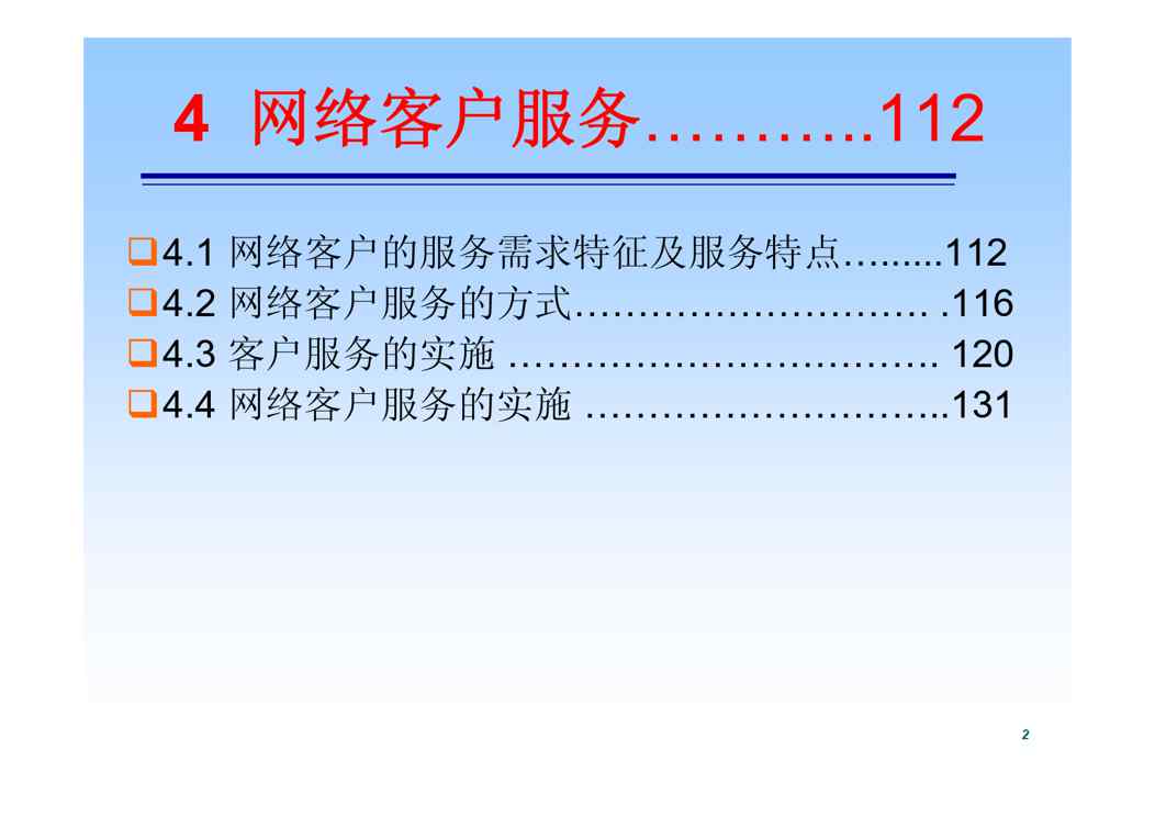 本站正式发布了《4_网络客户服务》文档,文档详细内容可下载阅读。 声明:本站所有文章,如无特殊说明或标注,均为本站原创发布。任何个人或组织,在未征得本站同意时,禁止复制、盗用、采集、发布本站内容到任何网站、书籍等各类媒体平台。如若本站内容侵犯了原著者的合法权益,可联系我们进行处理。