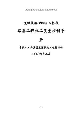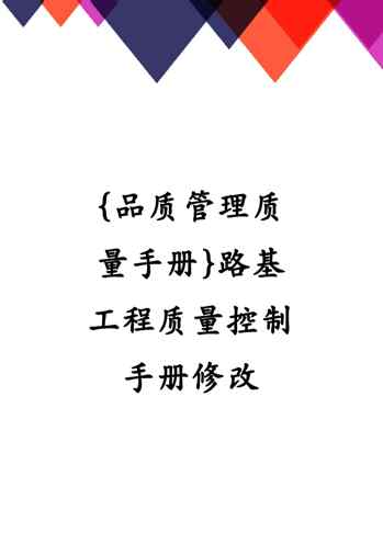 不久前,最新文档《{品质管理质量手册}路基工程质量控制手册修改》全文正式在本站发布,感兴趣的用户可以下载阅读。 声明:本站所有文章,如无特殊说明或标注,均为本站原创发布。任何个人或组织,在未征得本站同意时,禁止复制、盗用、采集、发布本站内容到任何网站、书籍等各类媒体平台。如若本站内容侵犯了原著者的合法权益,可联系我们进行处理。