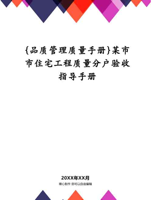 不久前,最新文档《{品质管理质量手册}某市市住宅工程质量分户验收指导手册》全文正式在本站发布,感兴趣的用户可以下载阅读。 声明:本站所有文章,如无特殊说明或标注,均为本站原创发布。任何个人或组织,在未征得本站同意时,禁止复制、盗用、采集、发布本站内容到任何网站、书籍等各类媒体平台。如若本站内容侵犯了原著者的合法权益,可联系我们进行处理。