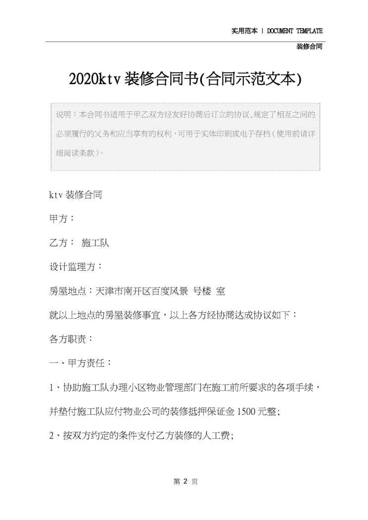 本站资深用户发布了最新的《2020ktv装修合同书(合同示范文本)》文档,以下内容为预览,详细内容可下载阅读。