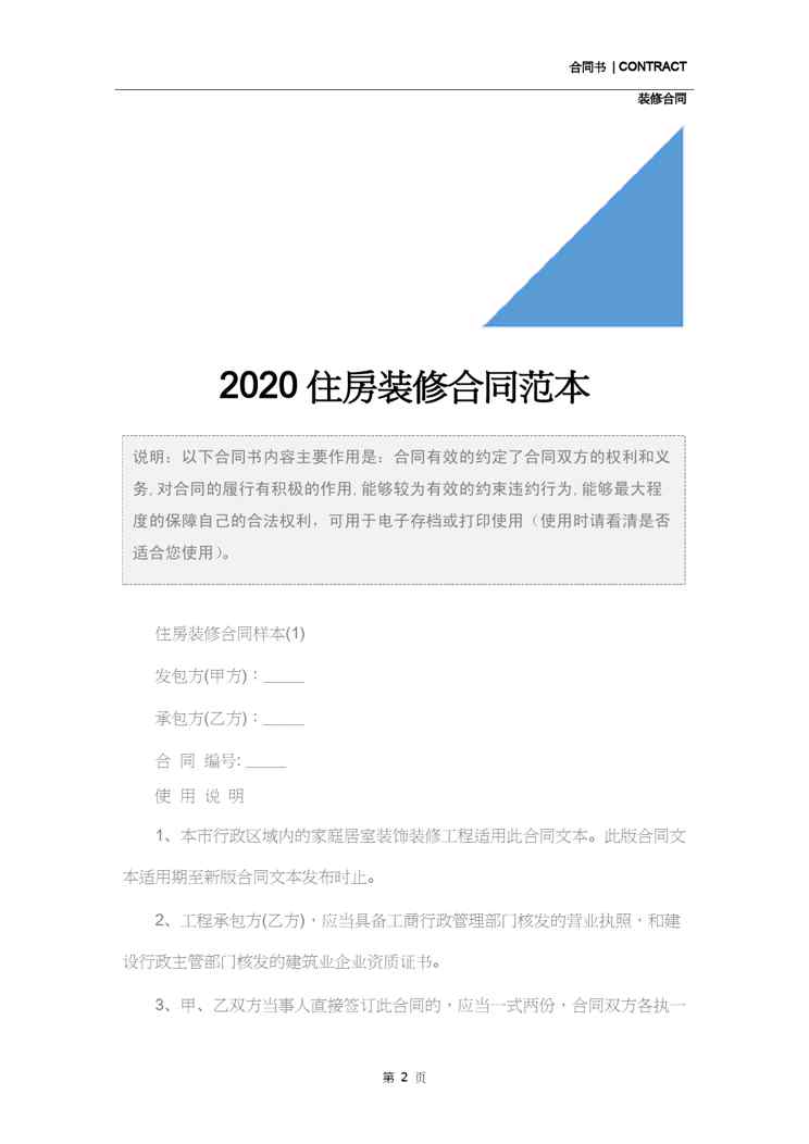 本站正式发布了《2020住房装修合同范本》文档,文档详细内容可下载阅读。 声明:本站所有文章,如无特殊说明或标注,均为本站原创发布。任何个人或组织,在未征得本站同意时,禁止复制、盗用、采集、发布本站内容到任何网站、书籍等各类媒体平台。如若本站内容侵犯了原著者的合法权益,可联系我们进行处理。