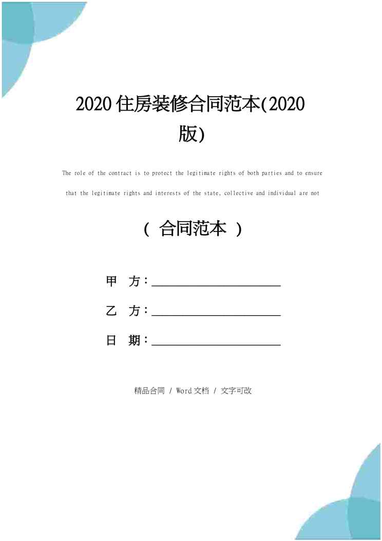 不久前,最新文档《2020住房装修合同范本详细版》全文正式在本站发布,感兴趣的用户可以下载阅读。 声明:本站所有文章,如无特殊说明或标注,均为本站原创发布。任何个人或组织,在未征得本站同意时,禁止复制、盗用、采集、发布本站内容到任何网站、书籍等各类媒体平台。如若本站内容侵犯了原著者的合法权益,可联系我们进行处理。