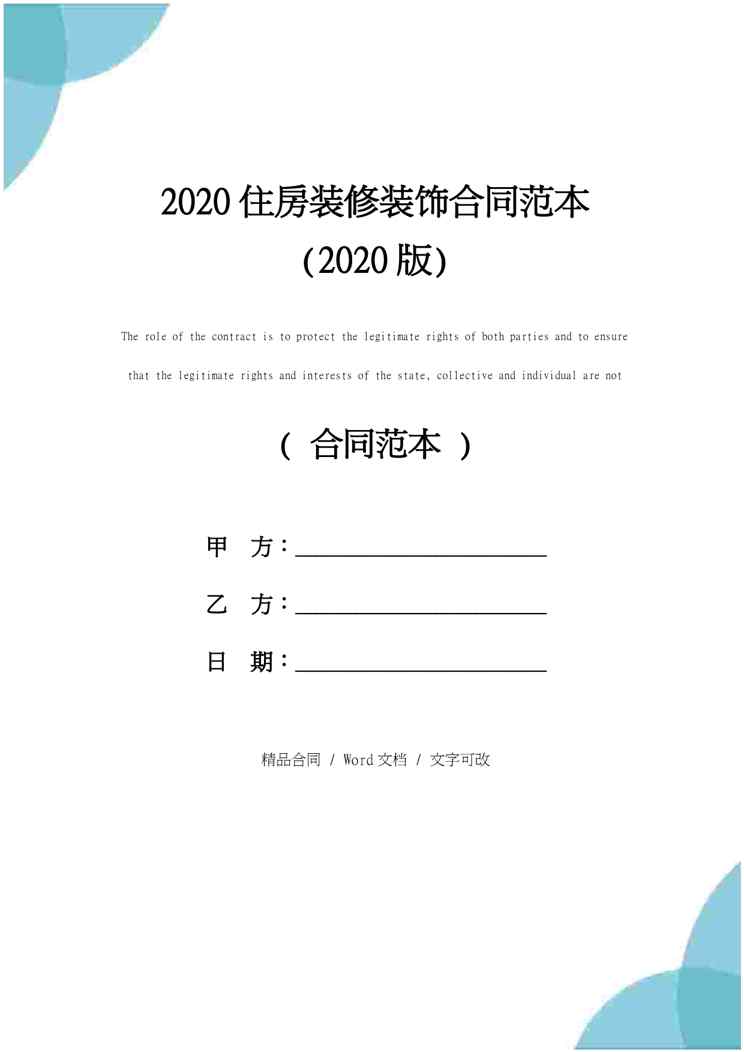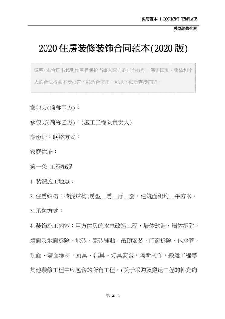 本站资深用户发布了最新的《2020住房装修装饰合同范本模板》文档,以下内容为预览,详细内容可下载阅读。 声明:本站所有文章,如无特殊说明或标注,均为本站原创发布。任何个人或组织,在未征得本站同意时,禁止复制、盗用、采集、发布本站内容到任何网站、书籍等各类媒体平台。如若本站内容侵犯了原著者的合法权益,可联系我们进行处理。