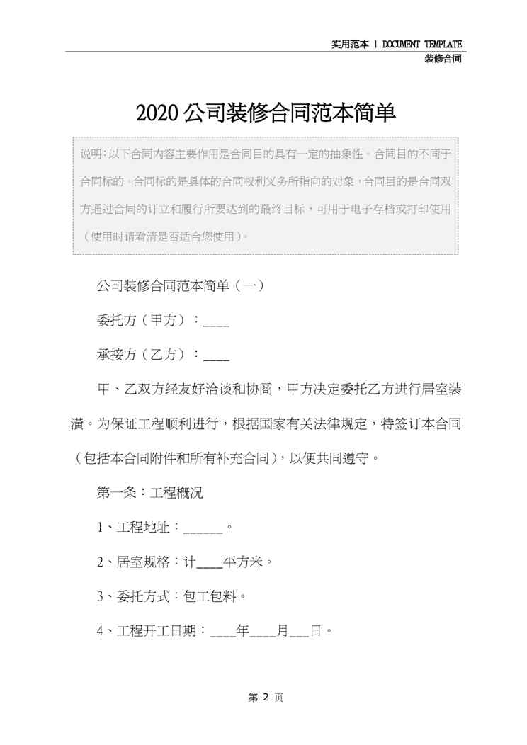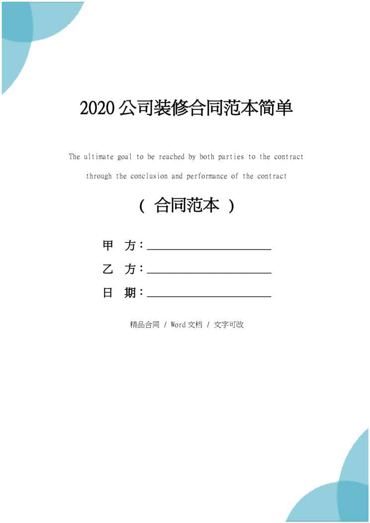 本站正式发布了《2020公司装修合同范本简单》文档,文档详细内容可下载阅读。 声明:本站所有文章,如无特殊说明或标注,均为本站原创发布。任何个人或组织,在未征得本站同意时,禁止复制、盗用、采集、发布本站内容到任何网站、书籍等各类媒体平台。如若本站内容侵犯了原著者的合法权益,可联系我们进行处理。