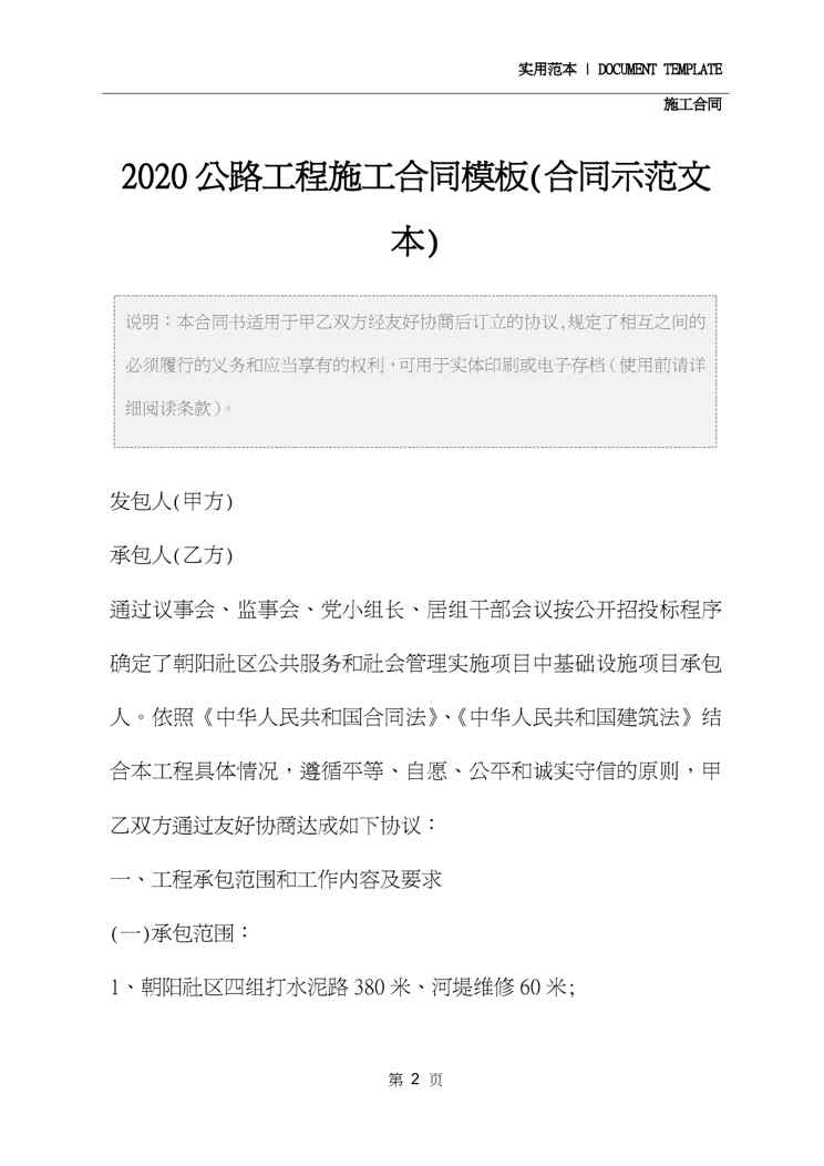 本站资深用户发布了最新的《2020公路工程施工合同模板(合同示范文本)》文档,以下内容为预览,详细内容可下载阅读。 声明:本站所有文章,如无特殊说明或标注,均为本站原创发布。任何个人或组织,在未征得本站同意时,禁止复制、盗用、采集、发布本站内容到任何网站、书籍等各类媒体平台。如若本站内容侵犯了原著者的合法权益,可联系我们进行处理。