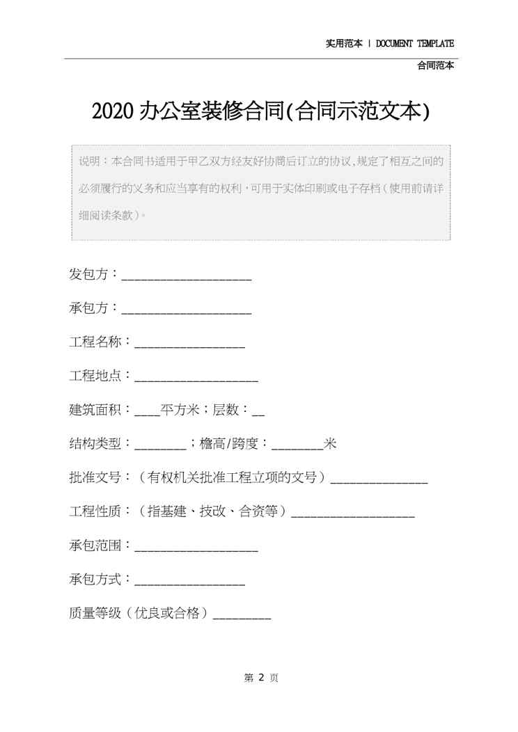 本站正式发布了《2020办公室装修合同(合同示范文本)》文档,文档详细内容可下载阅读。 声明:本站所有文章,如无特殊说明或标注,均为本站原创发布。任何个人或组织,在未征得本站同意时,禁止复制、盗用、采集、发布本站内容到任何网站、书籍等各类媒体平台。如若本站内容侵犯了原著者的合法权益,可联系我们进行处理。