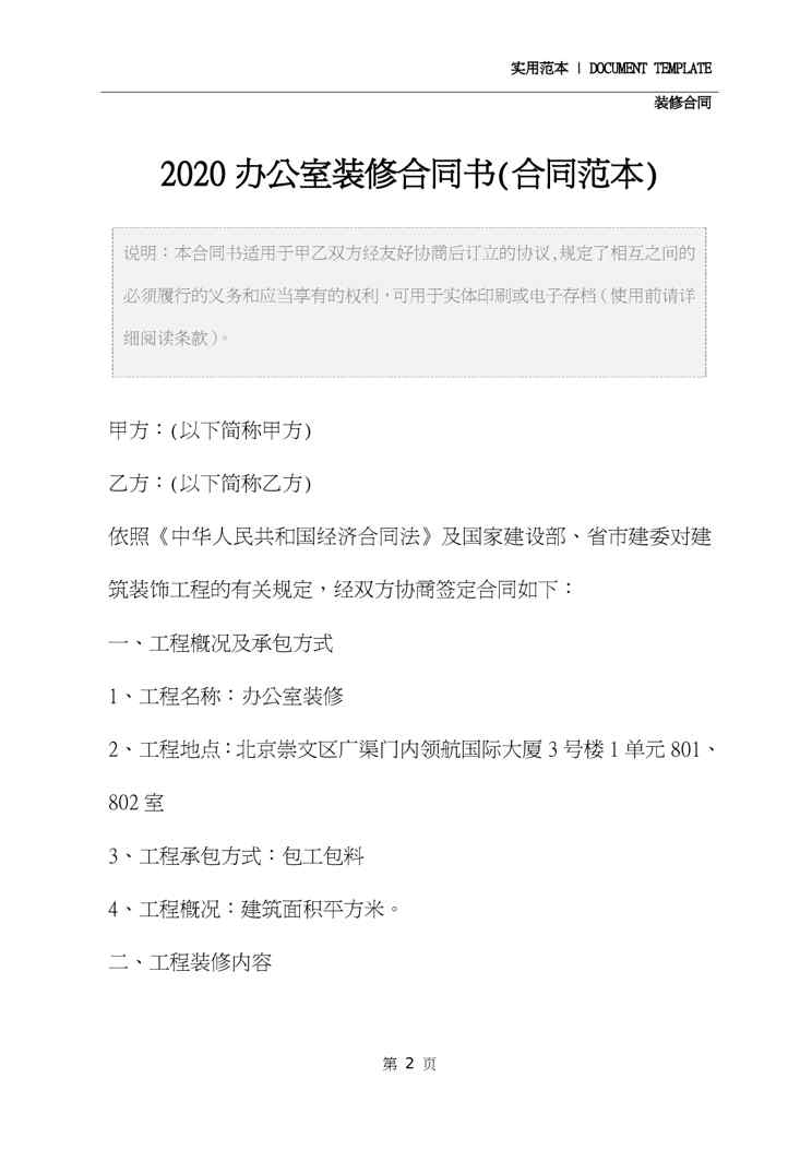 不久前,最新文档《2020办公室装修合同书(合同范本)》全文正式在本站发布,感兴趣的用户可以下载阅读。 声明:本站所有文章,如无特殊说明或标注,均为本站原创发布。任何个人或组织,在未征得本站同意时,禁止复制、盗用、采集、发布本站内容到任何网站、书籍等各类媒体平台。如若本站内容侵犯了原著者的合法权益,可联系我们进行处理。