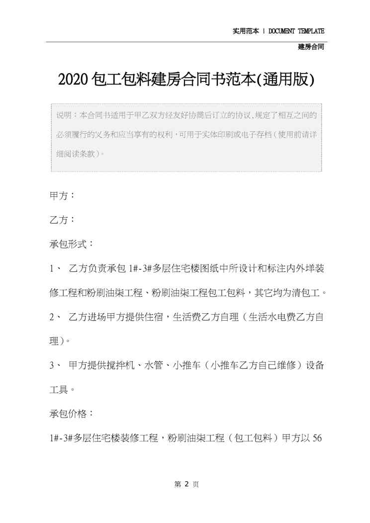 2020包工包料建房合同书范本(通用版)2020包工包料建房合同书范本(通用版)2020包工包料建房合同书范本(通用版)2020包工包料建房合同书范本(通用版)2020包工包料建房合同书范本(通用版)