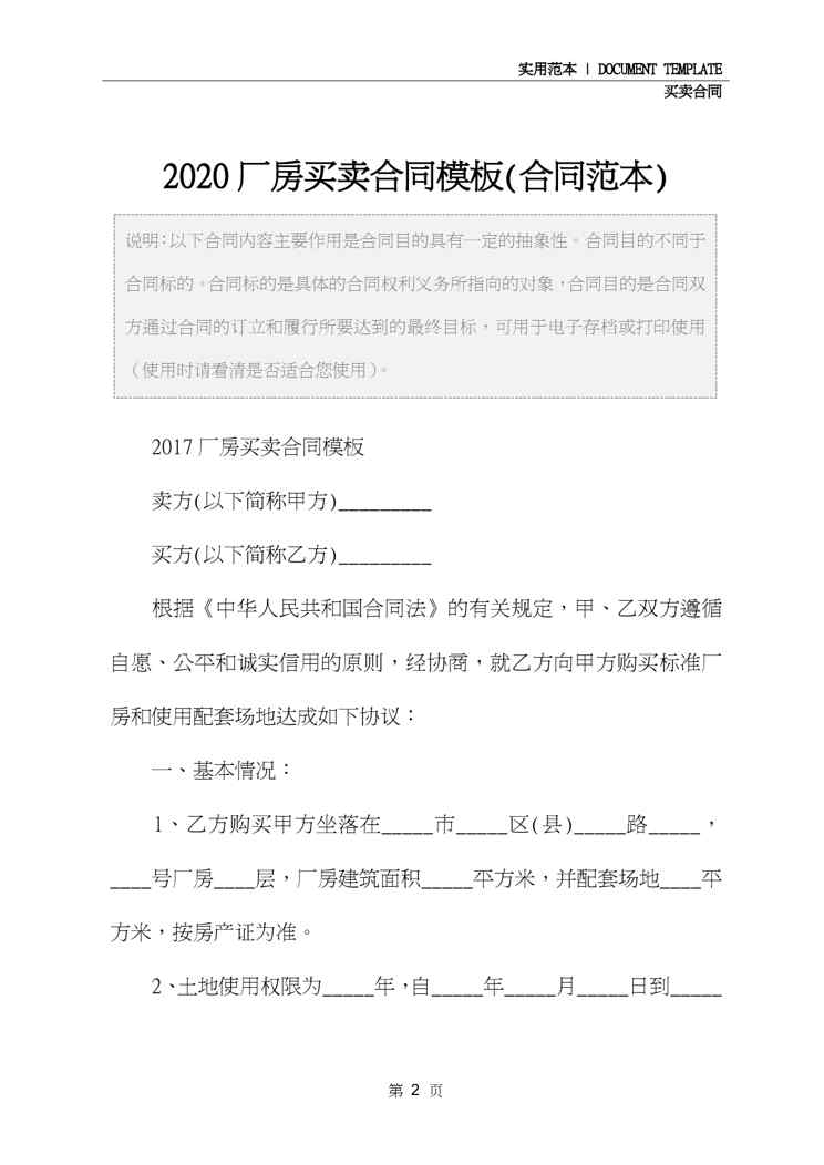 本站正式发布了《2020厂房买卖合同模板(合同范本)》文档,文档详细内容可下载阅读。 声明:本站所有文章,如无特殊说明或标注,均为本站原创发布。任何个人或组织,在未征得本站同意时,禁止复制、盗用、采集、发布本站内容到任何网站、书籍等各类媒体平台。如若本站内容侵犯了原著者的合法权益,可联系我们进行处理。