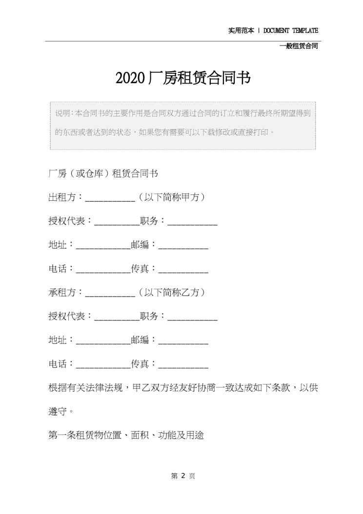 2020厂房租赁合同书2020厂房租赁合同书2020厂房租赁合同书2020厂房租赁合同书2020厂房租赁合同书