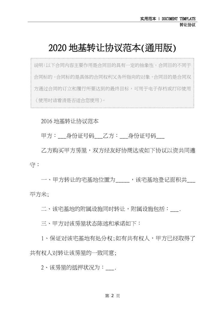 2020地基转让协议范本(通用版)2020地基转让协议范本(通用版)2020地基转让协议范本(通用版)2020地基转让协议范本(通用版)