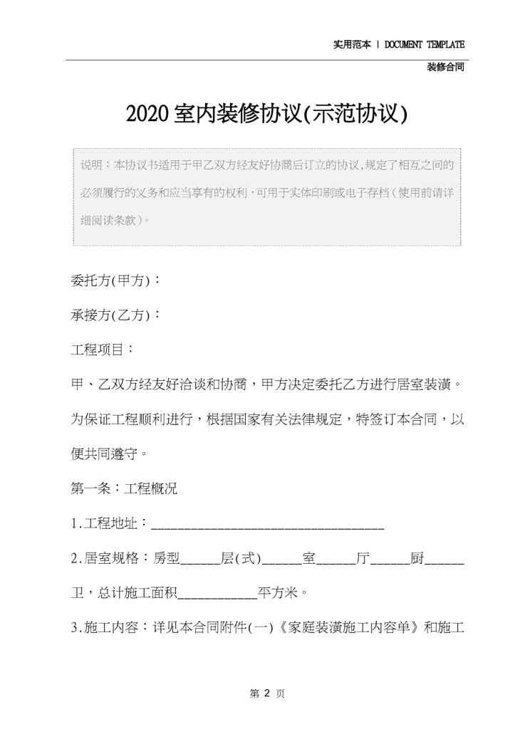 不久前,最新文档《2020室内装修协议(示范协议)》全文正式在本站发布,感兴趣的用户可以下载阅读。 声明:本站所有文章,如无特殊说明或标注,均为本站原创发布。任何个人或组织,在未征得本站同意时,禁止复制、盗用、采集、发布本站内容到任何网站、书籍等各类媒体平台。如若本站内容侵犯了原著者的合法权益,可联系我们进行处理。