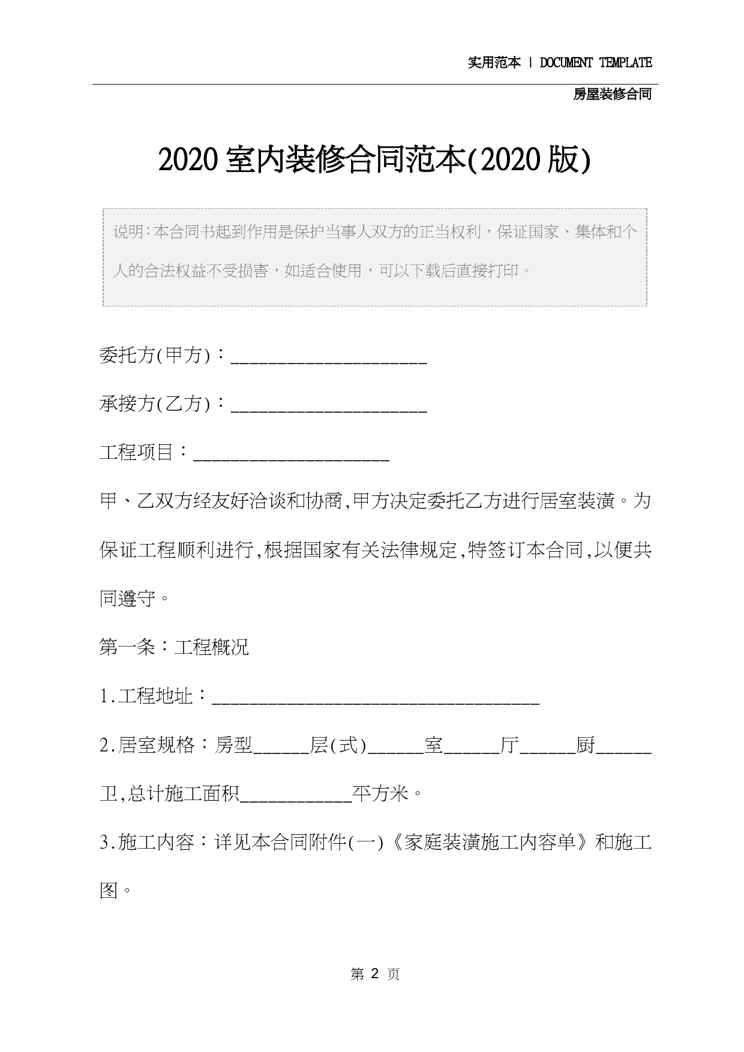 不久前,最新文档《2020室内装修合同范本正式版》全文正式在本站发布,感兴趣的用户可以下载阅读。 声明:本站所有文章,如无特殊说明或标注,均为本站原创发布。任何个人或组织,在未征得本站同意时,禁止复制、盗用、采集、发布本站内容到任何网站、书籍等各类媒体平台。如若本站内容侵犯了原著者的合法权益,可联系我们进行处理。