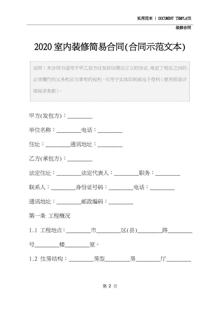 2020室内装修简易合同(合同示范文本)2020室内装修简易合同(合同示范文本)2020室内装修简易合同(合同示范文本)2020室内装修简易合同(合同示范文本)2020室内装修简易合同(合同示范文本)