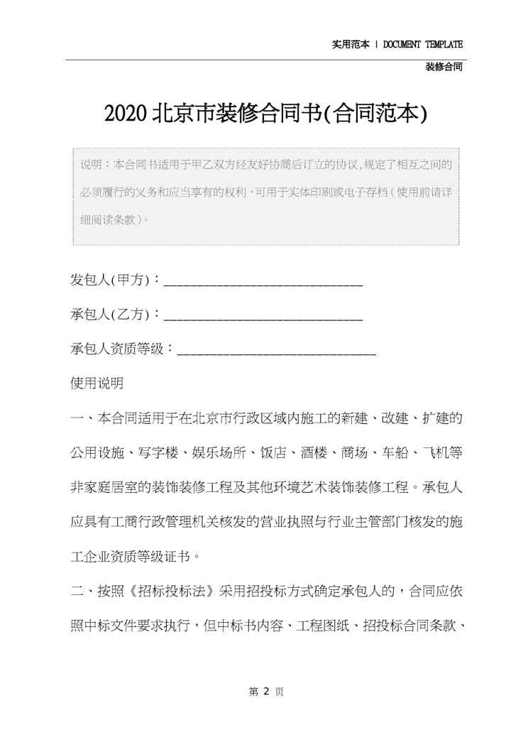 本站资深用户发布了最新的《2020北京市装修合同书(合同范本)》文档,以下内容为预览,详细内容可下载阅读。 声明:本站所有文章,如无特殊说明或标注,均为本站原创发布。任何个人或组织,在未征得本站同意时,禁止复制、盗用、采集、发布本站内容到任何网站、书籍等各类媒体平台。如若本站内容侵犯了原著者的合法权益,可联系我们进行处理。