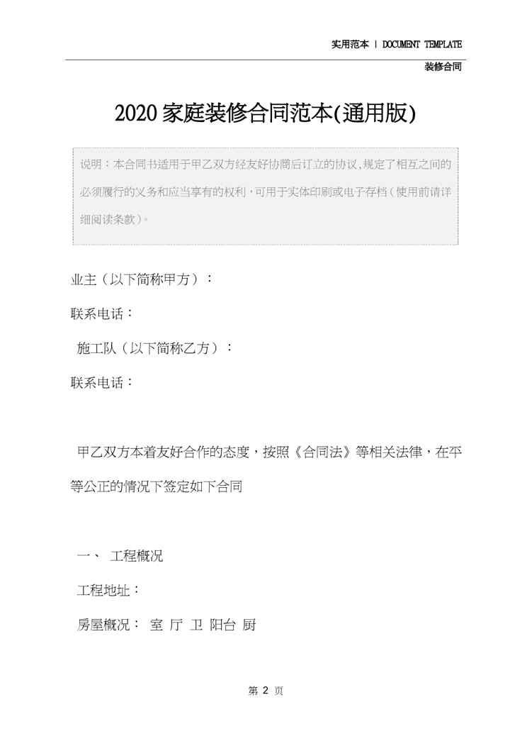 2020家庭装修合同范本(通用版)2020家庭装修合同范本(通用版)2020家庭装修合同范本(通用版)2020家庭装修合同范本(通用版)2020家庭装修合同范本(通用版)