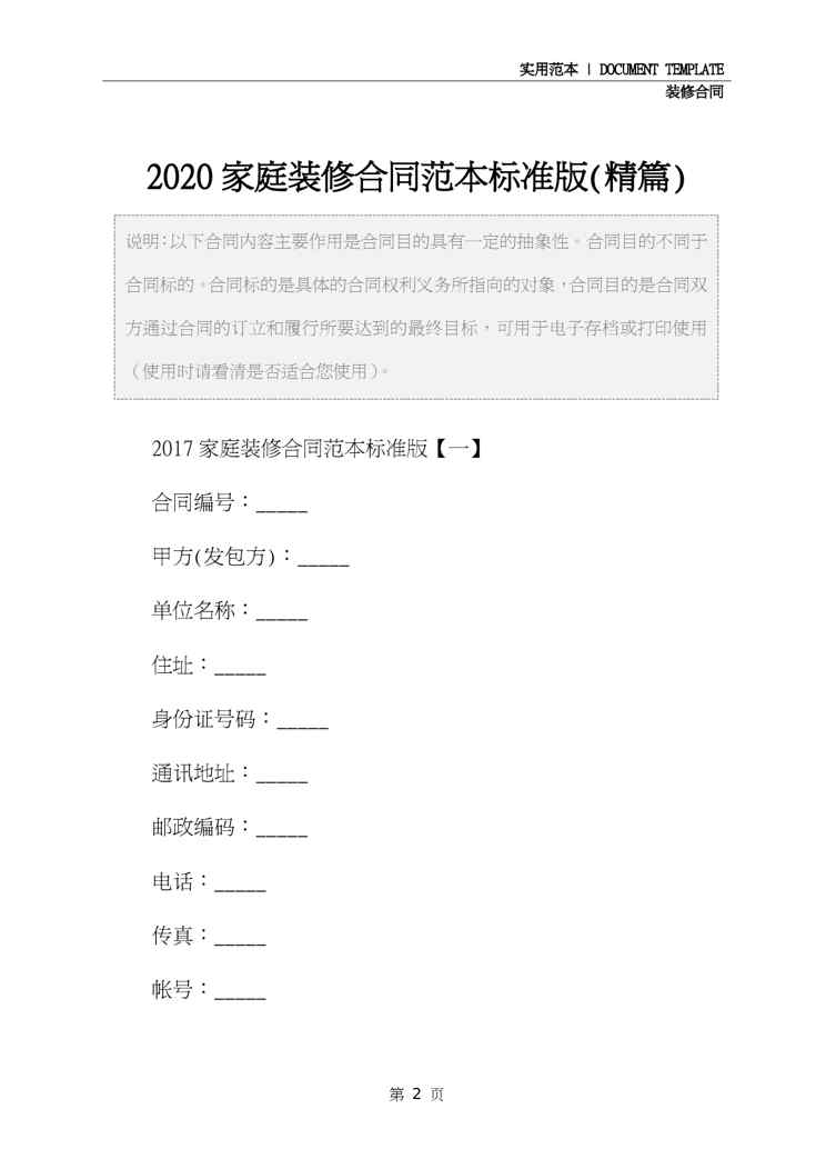 本站资深用户发布了最新的《2020家庭装修合同范本标准版(精篇)》文档,以下内容为预览,详细内容可下载阅读。 声明:本站所有文章,如无特殊说明或标注,均为本站原创发布。任何个人或组织,在未征得本站同意时,禁止复制、盗用、采集、发布本站内容到任何网站、书籍等各类媒体平台。如若本站内容侵犯了原著者的合法权益,可联系我们进行处理。