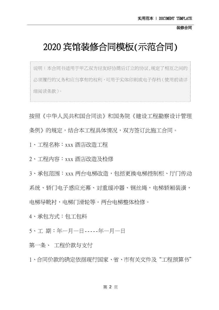 本站正式发布了《2020宾馆装修合同模板(示范合同)》文档,文档详细内容可下载阅读。 声明:本站所有文章,如无特殊说明或标注,均为本站原创发布。任何个人或组织,在未征得本站同意时,禁止复制、盗用、采集、发布本站内容到任何网站、书籍等各类媒体平台。如若本站内容侵犯了原著者的合法权益,可联系我们进行处理。