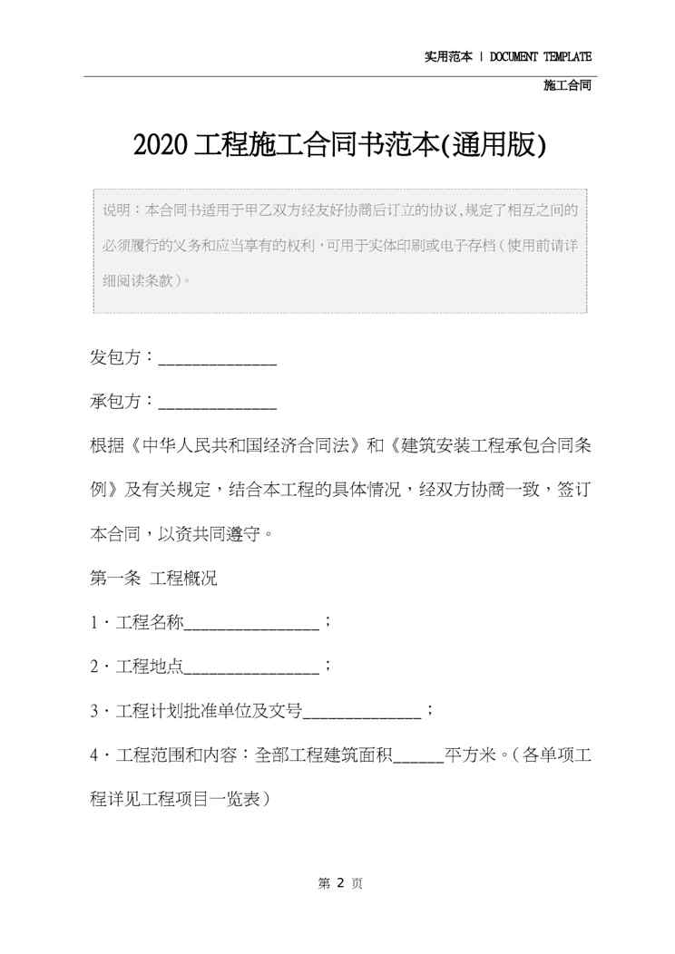 本站正式发布了《2020工程施工合同书范本(通用版)》文档,文档详细内容可下载阅读。 声明:本站所有文章,如无特殊说明或标注,均为本站原创发布。任何个人或组织,在未征得本站同意时,禁止复制、盗用、采集、发布本站内容到任何网站、书籍等各类媒体平台。如若本站内容侵犯了原著者的合法权益,可联系我们进行处理。