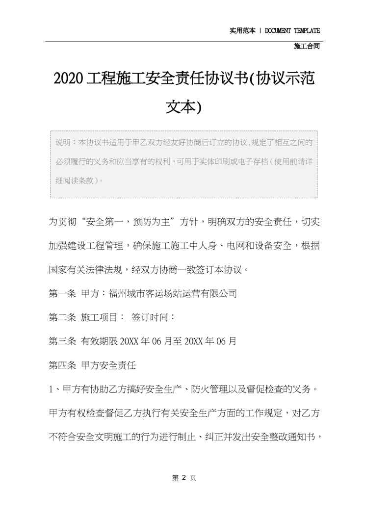 本站资深用户发布了最新的《2020工程施工安全责任协议书(协议示范文本)》文档,以下内容为预览,详细内容可下载阅读。 声明:本站所有文章,如无特殊说明或标注,均为本站原创发布。任何个人或组织,在未征得本站同意时,禁止复制、盗用、采集、发布本站内容到任何网站、书籍等各类媒体平台。如若本站内容侵犯了原著者的合法权益,可联系我们进行处理。