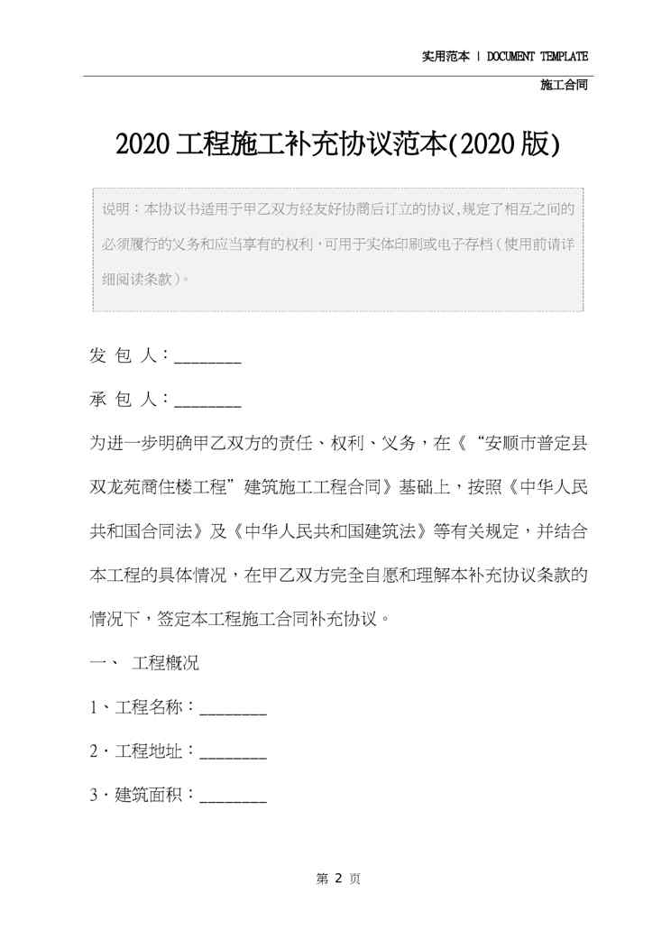 本站资深用户发布了最新的《2020工程施工补充协议范本(2020版)》文档,以下内容为预览,详细内容可下载阅读。 声明:本站所有文章,如无特殊说明或标注,均为本站原创发布。任何个人或组织,在未征得本站同意时,禁止复制、盗用、采集、发布本站内容到任何网站、书籍等各类媒体平台。如若本站内容侵犯了原著者的合法权益,可联系我们进行处理。