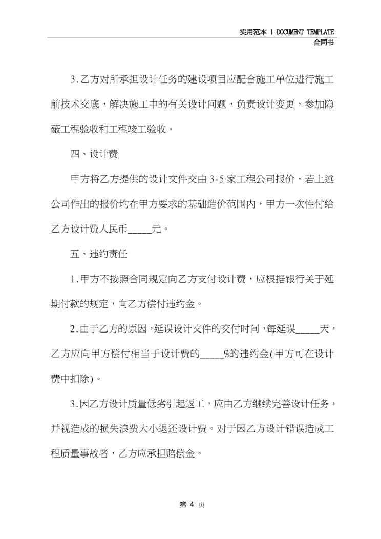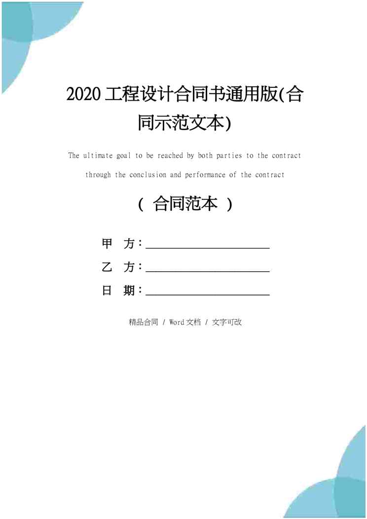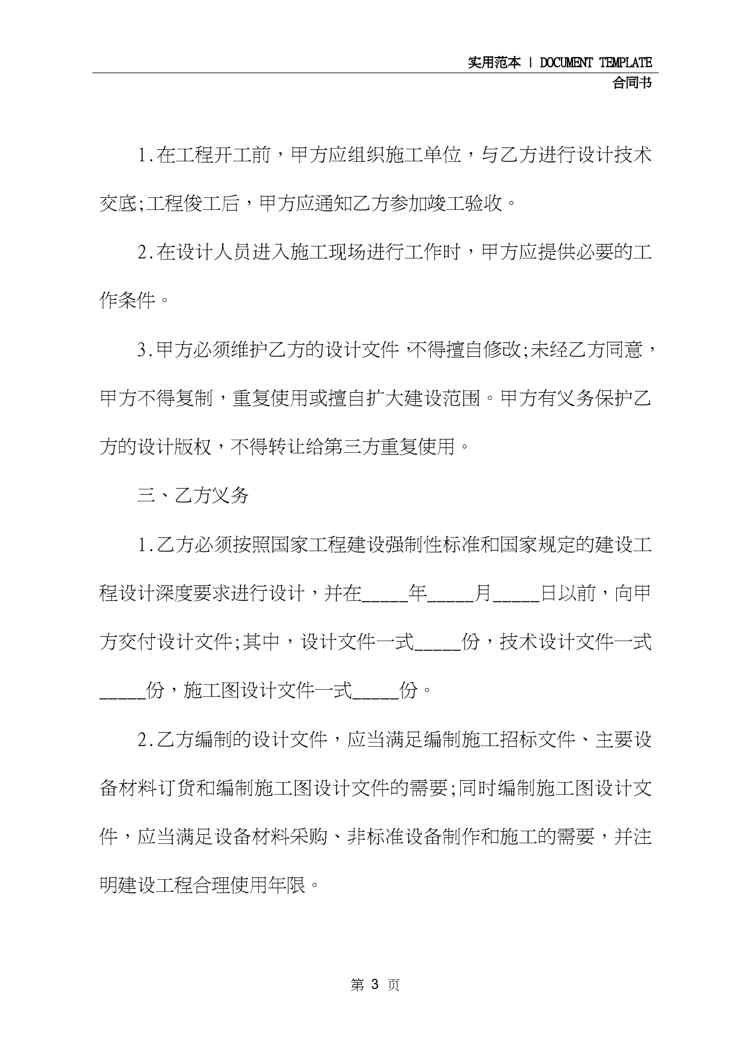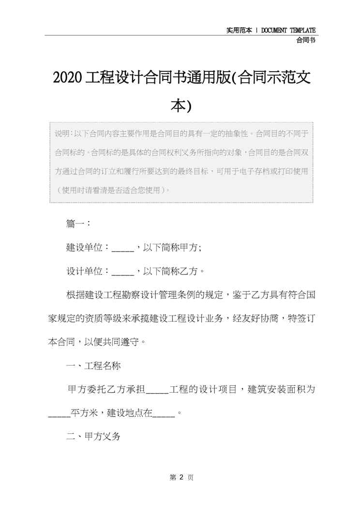 不久前,最新文档《2020工程设计合同书通用版(合同示范文本)》全文正式在本站发布,感兴趣的用户可以下载阅读。 声明:本站所有文章,如无特殊说明或标注,均为本站原创发布。任何个人或组织,在未征得本站同意时,禁止复制、盗用、采集、发布本站内容到任何网站、书籍等各类媒体平台。如若本站内容侵犯了原著者的合法权益,可联系我们进行处理。