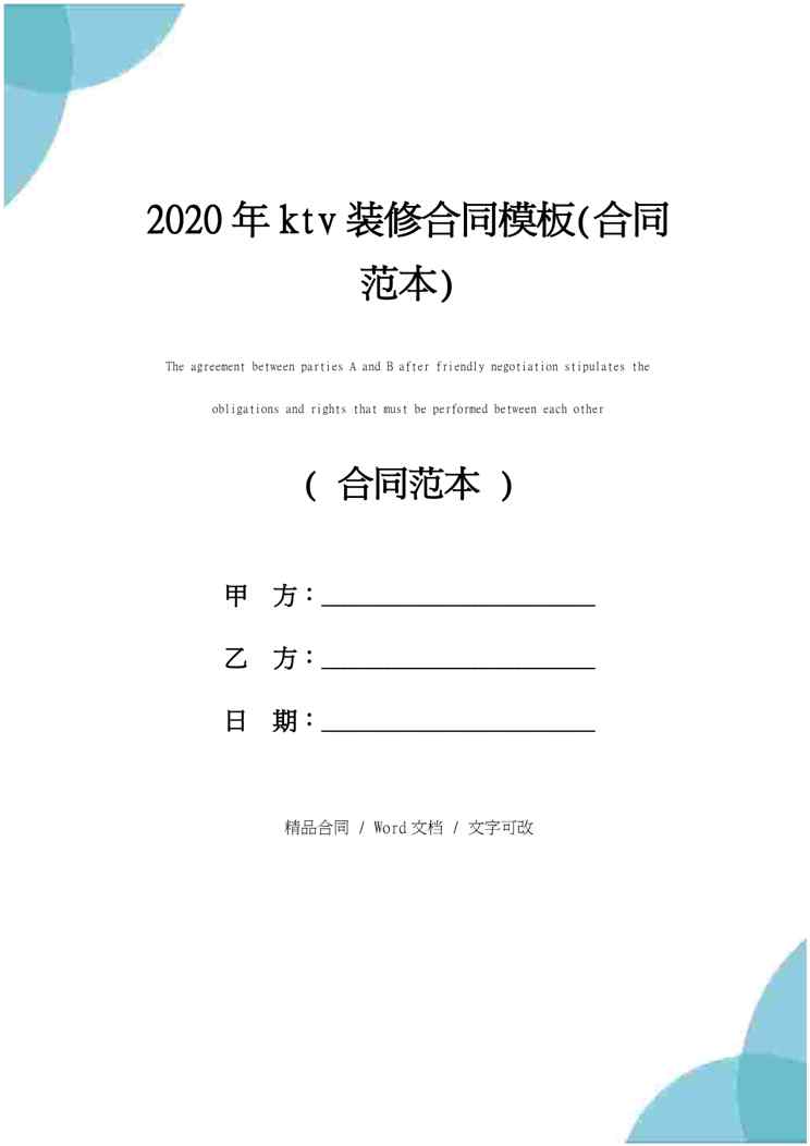 本站资深用户发布了最新的《2020年ktv装修合同模板(合同范本)》文档,以下内容为预览,详细内容可下载阅读。 声明:本站所有文章,如无特殊说明或标注,均为本站原创发布。任何个人或组织,在未征得本站同意时,禁止复制、盗用、采集、发布本站内容到任何网站、书籍等各类媒体平台。如若本站内容侵犯了原著者的合法权益,可联系我们进行处理。