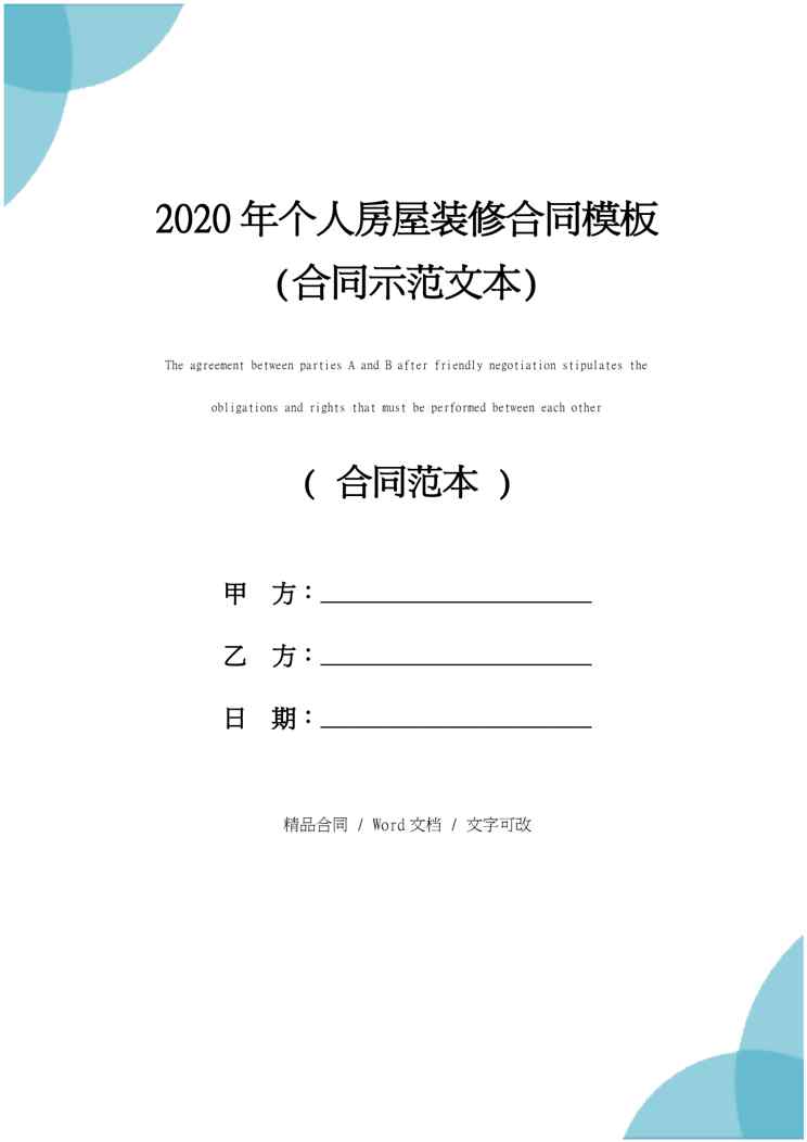 本站资深用户发布了最新的《2020年个人房屋装修合同模板(合同示范文本)》文档,以下内容为预览,详细内容可下载阅读。 声明:本站所有文章,如无特殊说明或标注,均为本站原创发布。任何个人或组织,在未征得本站同意时,禁止复制、盗用、采集、发布本站内容到任何网站、书籍等各类媒体平台。如若本站内容侵犯了原著者的合法权益,可联系我们进行处理。