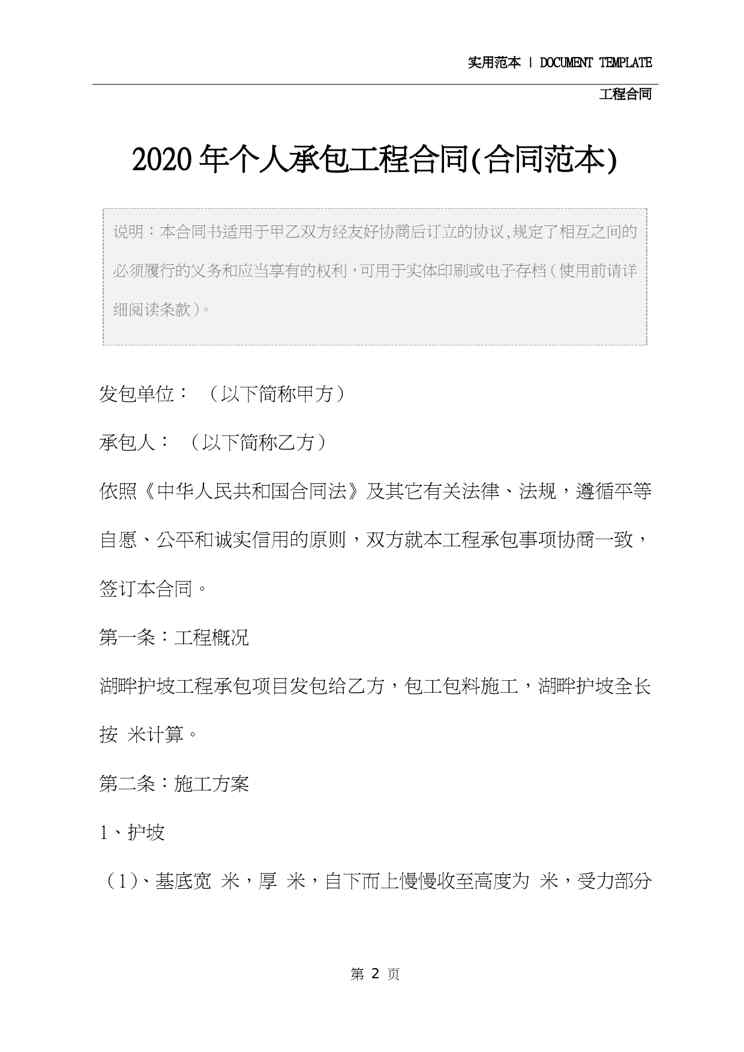2020年个人承包工程合同(合同范本)2020年个人承包工程合同(合同范本)2020年个人承包工程合同(合同范本)2020年个人承包工程合同(合同范本)2020年个人承包工程合同(合同范本)