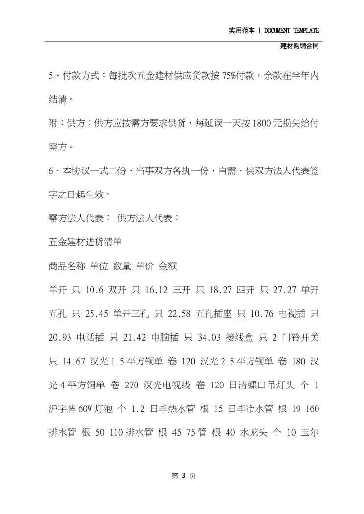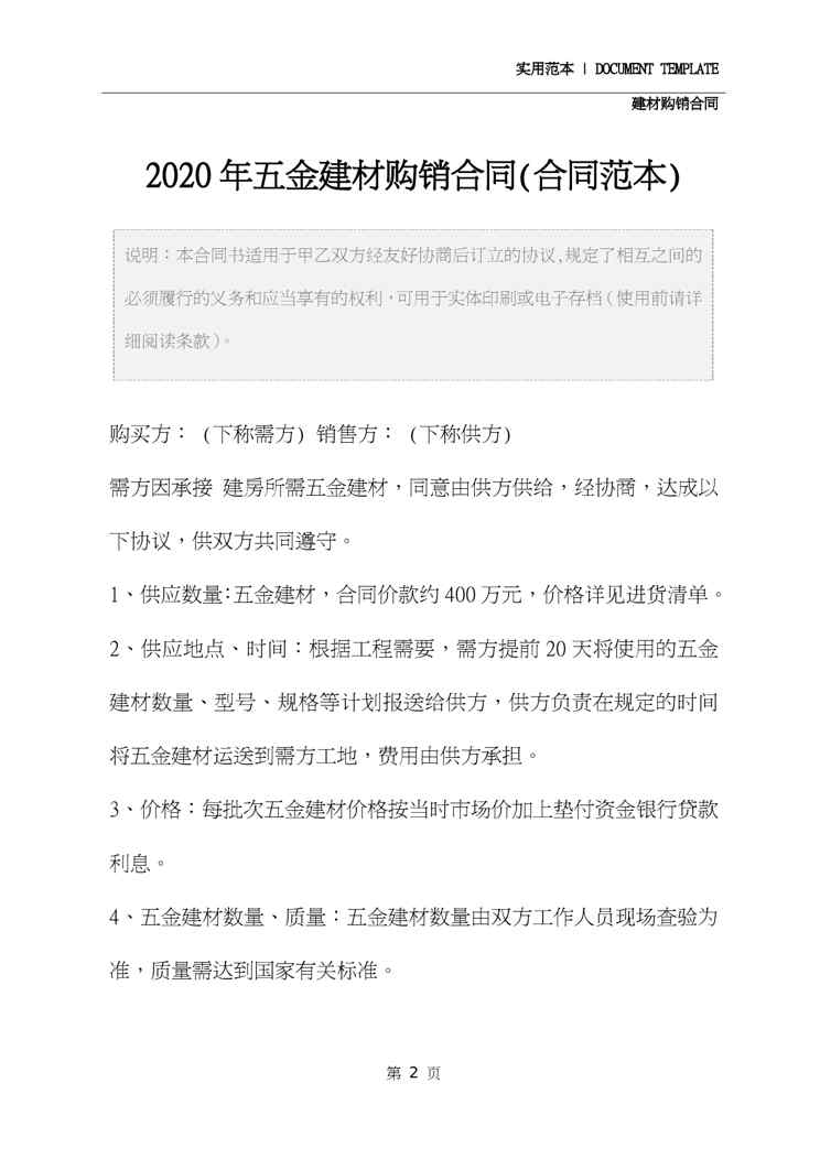 不久前,最新文档《2020年五金建材购销合同(合同范本)》全文正式在本站发布,感兴趣的用户可以下载阅读。 声明:本站所有文章,如无特殊说明或标注,均为本站原创发布。任何个人或组织,在未征得本站同意时,禁止复制、盗用、采集、发布本站内容到任何网站、书籍等各类媒体平台。如若本站内容侵犯了原著者的合法权益,可联系我们进行处理。