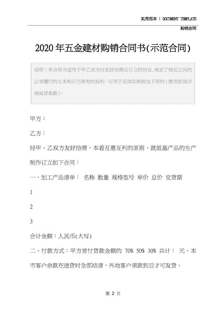 不久前,最新文档《2020年五金建材购销合同书(示范合同)》全文正式在本站发布,感兴趣的用户可以下载阅读。 声明:本站所有文章,如无特殊说明或标注,均为本站原创发布。任何个人或组织,在未征得本站同意时,禁止复制、盗用、采集、发布本站内容到任何网站、书籍等各类媒体平台。如若本站内容侵犯了原著者的合法权益,可联系我们进行处理。