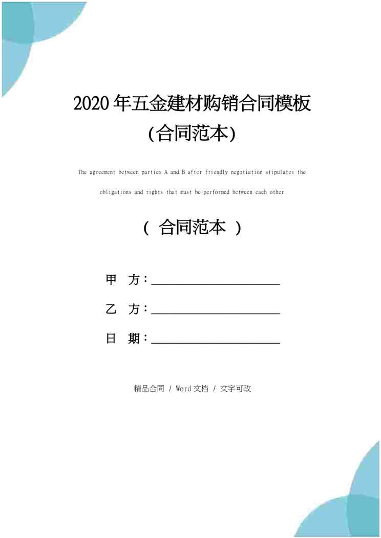 本站正式发布了《2020年五金建材购销合同模板(合同范本)》文档,文档详细内容可下载阅读。 声明:本站所有文章,如无特殊说明或标注,均为本站原创发布。任何个人或组织,在未征得本站同意时,禁止复制、盗用、采集、发布本站内容到任何网站、书籍等各类媒体平台。如若本站内容侵犯了原著者的合法权益,可联系我们进行处理。