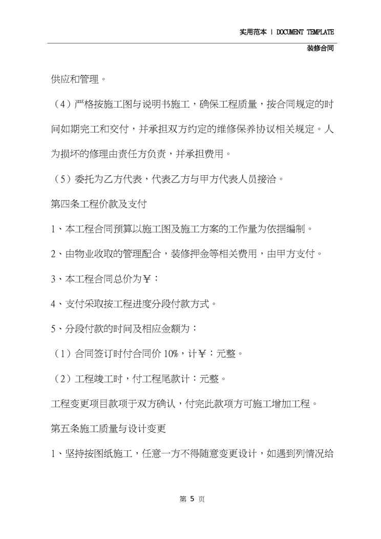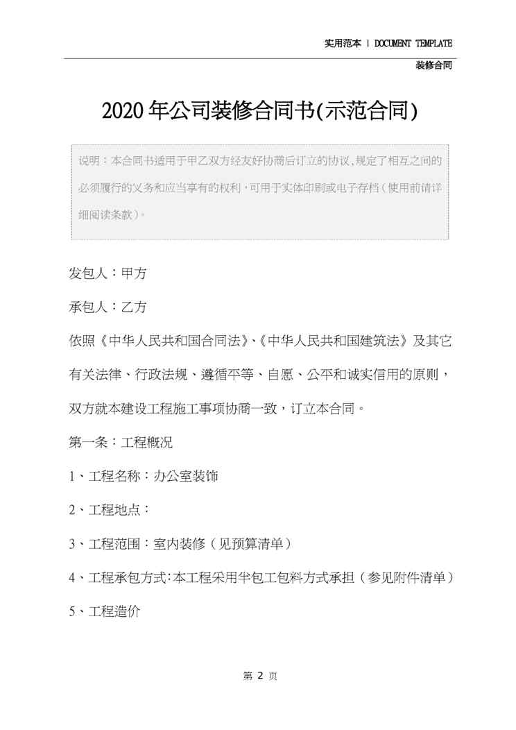 本站资深用户发布了最新的《2020年公司装修合同书(示范合同)》文档,以下内容为预览,详细内容可下载阅读。 声明:本站所有文章,如无特殊说明或标注,均为本站原创发布。任何个人或组织,在未征得本站同意时,禁止复制、盗用、采集、发布本站内容到任何网站、书籍等各类媒体平台。如若本站内容侵犯了原著者的合法权益,可联系我们进行处理。