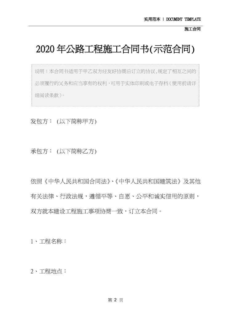 本站资深用户发布了最新的《2020年公路工程施工合同书(示范合同)》文档,以下内容为预览,详细内容可下载阅读。 声明:本站所有文章,如无特殊说明或标注,均为本站原创发布。任何个人或组织,在未征得本站同意时,禁止复制、盗用、采集、发布本站内容到任何网站、书籍等各类媒体平台。如若本站内容侵犯了原著者的合法权益,可联系我们进行处理。